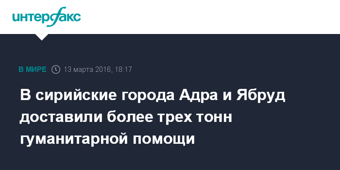 В сирийские города Адра и Ябруд доставили более трех тонн гуманитарной помощи