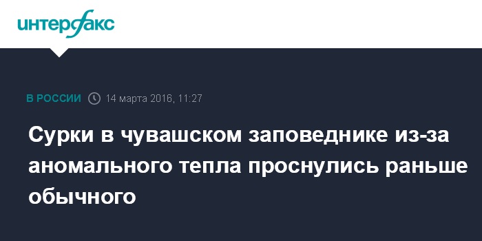 Москва. 14 марта. INTERFAX.RU - Теплая весенняя погода в этом году способствовала раннему пробуждению сурков - обитателей государственного природного заповедника "Присурский" в Чувашии.