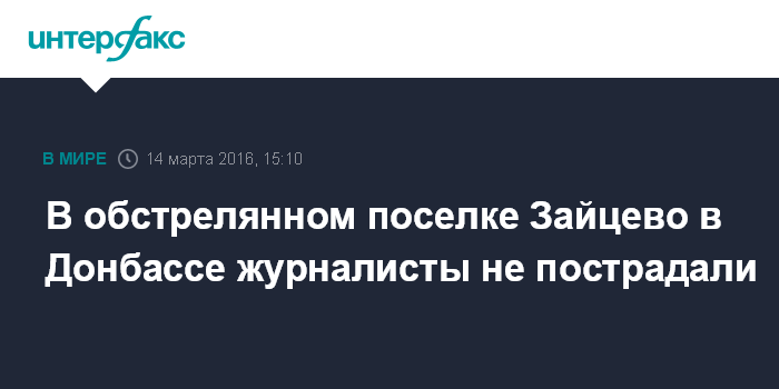 Москва. 14 марта. INTERFAX.RU - Группе журналистов, оказавшейся в поселке Зайцево близ линии соприкосновения сторон конфликта в Донбассе во время обстрела, удалось выбраться из опасной зоны, никто из представителей СМИ не пострадал, передает корреспондент "Интерфакса" с места событий.