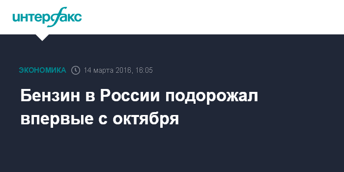 Москва. 14 марта. INTERFAX.RU – Потребительские цены на бензин в России с 1 по 9 марта выросли на 0,3%, сообщил Росстат.