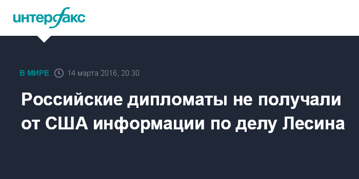 Ранее в посольстве США заявили "Интерфаксу", что госдеп США предоставил России все данные о ходе расследования смерти Лесина. Так пресс-атташе посольства США в РФ Уилл Стивенс прокомментировал заявления российских официальных лиц о том, что Москва ждет от Вашингтона данные о расследовании смерти Лесина.