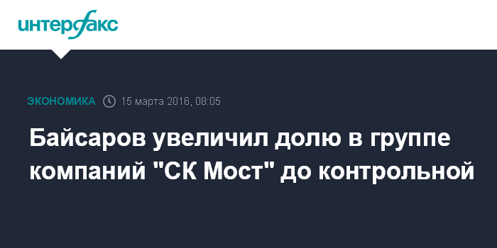 На дату сделки Байсаров уже являлся акционером СК "Мост" - в июле 2015 года он приобрел блокирующий пакет в размере 25% плюс одна акция у структур Геннадия Тимченко.