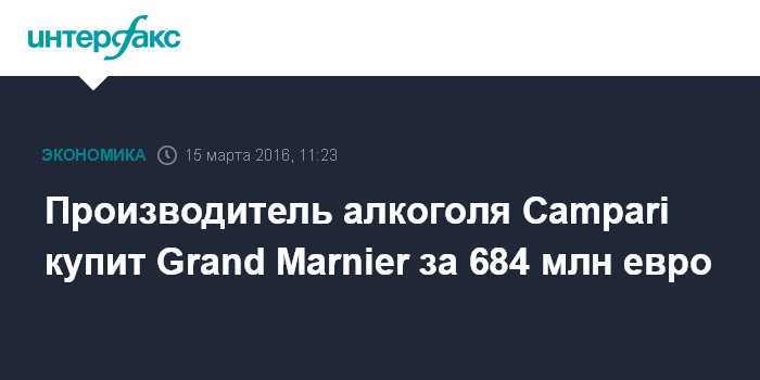 Москва. 15 марта. INTERFAX.RU – Davide Campari-Milano, крупный итальянский производитель алкогольных напитков, покупает своего французского конкурента Grand Marnier Group в рамках сделки, оценивающей последнюю в 684 млн евро.