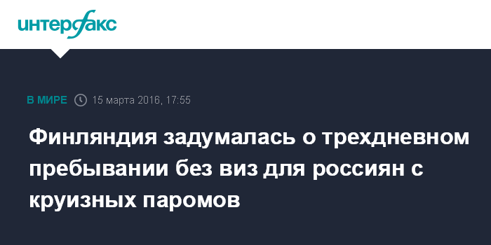 Финляндия задумалась о трехдневном пребывании без виз для россиян с круизных паромов