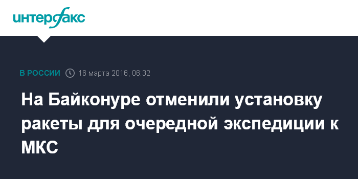 Москва. 16 марта. INTERFAX.RU - Установка ракеты-носителя "Союз-ФГ", на которой должна стартовать очередная экспедиция на международную космическую станцию, отменена из-за сильного ветра на космодроме "Байконур", сообщил "Интерфаксу" источник в ракетно-космической отрасли.