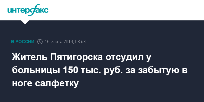 Житель Пятигорска отсудил у больницы 150 тыс. руб. за забытую в ноге салфетку