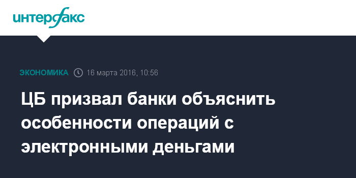 Москва. 16 марта. INTERFAX.RU - Банк России рекомендует банкам работать над повышением информированности клиентов - физических лиц об особенностях оказания услуг по переводу электронных денежных средств, говорится в сообщении регулятора.
