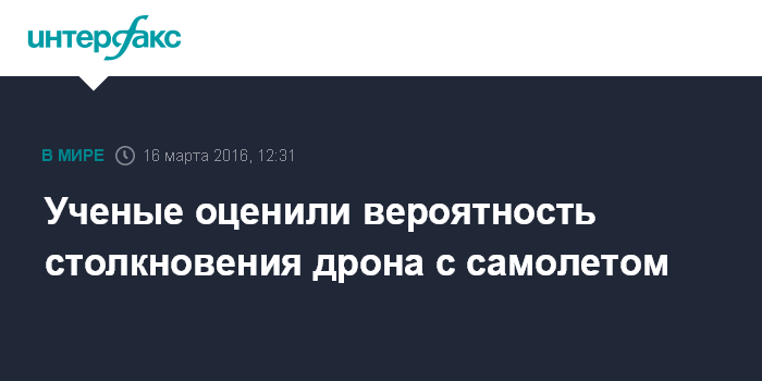 Москва. 16 марта. INTERFAX.RU - Ученые из Университета Джорджа Мейсона пришли к выводу, что угроза дронов авиации несколько преувеличена. По оценкам исследователей, только один случай за 187 млн лет должен закончиться масштабной катастрофой, пишет сайт N+1.