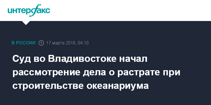 Москва. 17 марта. INTERFAX.RU - Фрунзенский районный суд Владивостока в четверг приступил к рассмотрению уголовного дела против гендиректора ООО "НПО "Мостовик" Олега Шишова, обвиняемого в пособничестве в крупной растрате при строительстве Приморского океанариума на острове Русский.