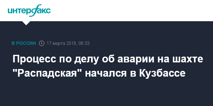Москва. 17 марта. INTERFAX.RU - Первое судебное заседание по уголовному делу об аварии на шахте "Распадская", в которой погиб 91 человек, а еще 133 шахтера получили травмы различной степени тяжести, началось в Междуреченском городском суде (Междуреченск, Кемеровская область), сообщили агентству "Интерфакс" в пресс-службе прокуратуры региона.