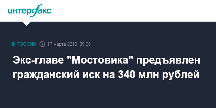 Экс-главе "Мостовика" предъявлен гражданский иск на 340 млн рублей