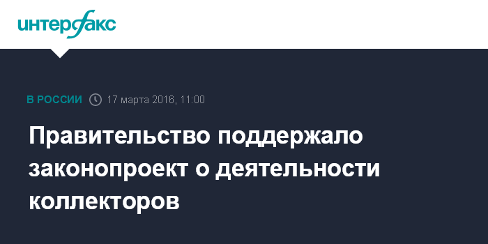 Москва. 17 марта. INTERFAX.RU - Правительство РФ поддержало законопроект о правилах взаимодействия коллекторов с должниками, говорится в сообщении на сайте правительства.