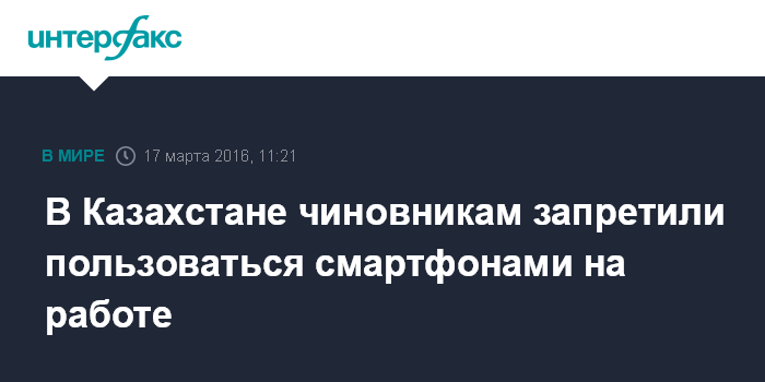Москва. 17 марта. INTERFAX.RU - Государственным служащим в Казахстане запрещают пользоваться смартфонами и планшетами на рабочих местах. Как сообщили агентству "Интерфакс" работники ряда министерств, в начале марта они получили уведомление о том, что проносить с собой в здания смартфоны и планшеты теперь нельзя.