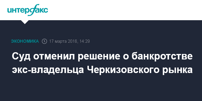 Суд отменил решение о банкротстве экс-владельца Черкизовского рынка