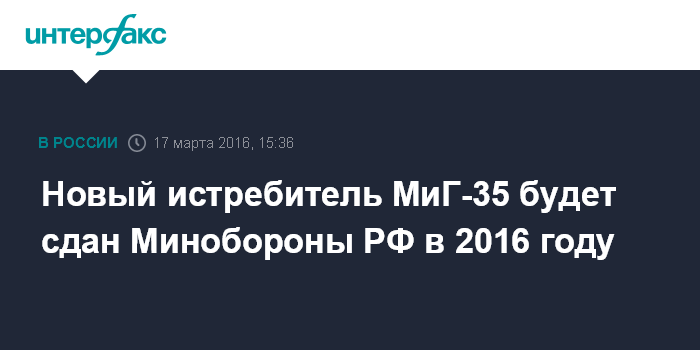 Новый истребитель МиГ-35 будет сдан Минобороны РФ в 2016 году