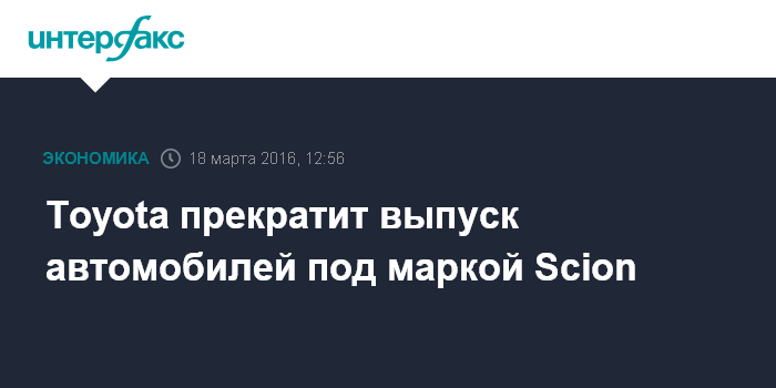 Москва. 18 марта. INTERFAX.RU - Японский производитель Toyota Motor Corp. откажется от бренда Scion с августа 2016 года, сообщает MarketWatch.