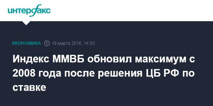 Индекс ММВБ обновил максимум с 2008 года после решения ЦБ РФ по ставке