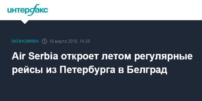 Москва. 18 марта. INTERFAX.RU - Авиакомпания Air Serbia с 18 июня откроет прямые регулярные рейсы из Белграда (Сербия) в петербургский аэропорт "Пулково", сообщает пресс-служба ООО "Воздушные ворота северной столицы" (ВВСС, управляет аэропортом).