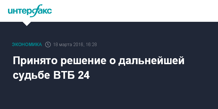 Москва. 18 марта. INTERFAX.RU - Решение о дальнейшей судьбе банка ВТБ 24 (будет ли он присоединен к ВТБ или останется отдельным юрлицом) уже принято, будет оглашено позже, сообщил журналистам глава ВТБ Андрей Костин.