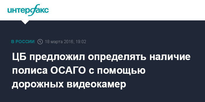 Москва. 18 марта. INTERFAX.RU - Министерство внутренних дел РФ рассматривает предложение Банка России о применении дорожных комплексов видео-фиксации для выявления автовладельцев, нарушающих условия ОСАГО (страхование автогражданской ответственности). Об этом сообщил в пятницу руководитель департамента страхового рынка Банка России Игорь Жук.