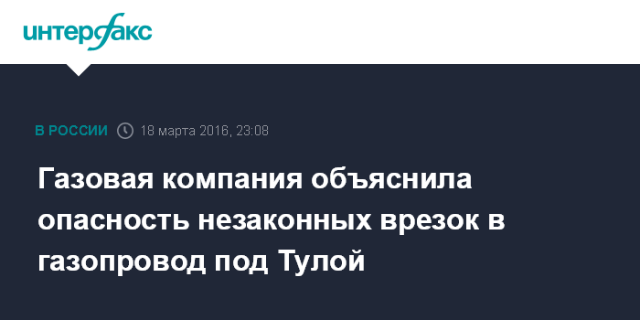 Москва. 18 марта. INTERFAX.RU - В АО "Газпром газораспределение Тула" назвали недопустимым ситуации с самовольным подключением к газопроводу, как это произошло в поселке Плеханово под Тулой.