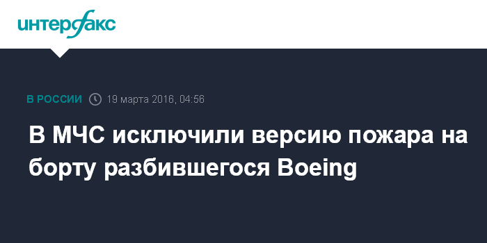 Москва. 19 марта. INTERFAX.RU - На борту Boeing, разбившегося в Ростове-на-Дону, пожара не было, он мог разрушиться, зацепившись за взлетно-посадочную полосу, сообщил "Интерфаксу" начальник ЮРЦ МЧС России Игорь Одер.