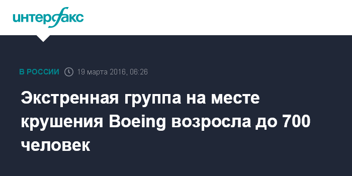 Москва. 19 марта. INTERFAX.RU - Группировка в составе более 700 человек работает на месте крушения пассажирского Boeing 737-800 в Ростове-на-Дону, сообщил в ходе селекторного совещания в Москве глава МЧС Владимир Пучков.