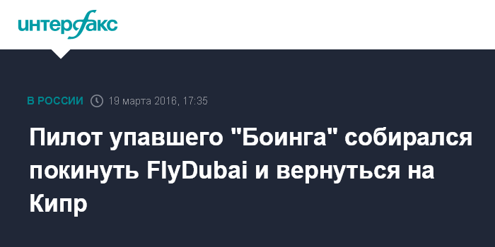 Пилот упавшего "Боинга" собирался покинуть FlyDubai и вернуться на Кипр