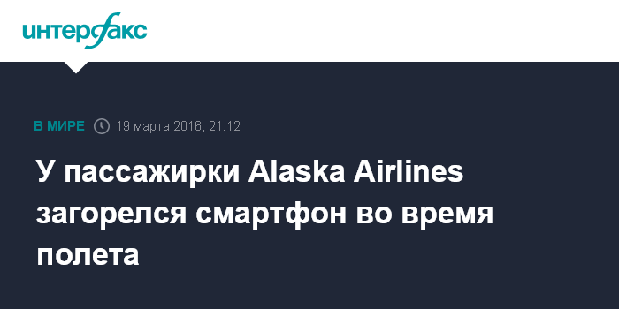 У пассажирки Alaska Airlines загорелся смартфон во время полета