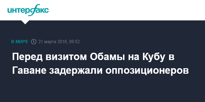 Москва. 21 марта. INTERFAX.RU - Серия задержаний оппозиционеров прошла в Гаване в преддверие визита президента США Барака Обамы на Кубу, сообщает телерадиостанция "Марти", работающая для Кубы из Соединенных Штатов.