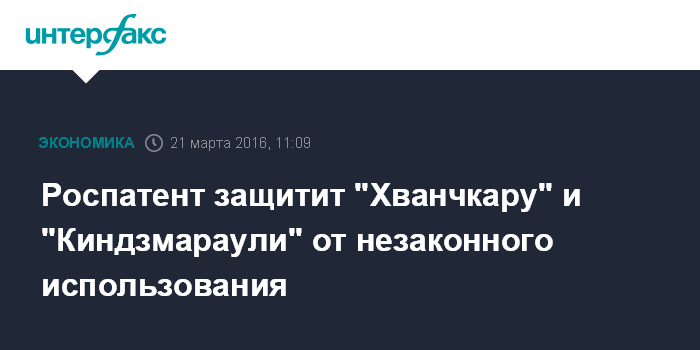 "Защита в Российской Федерации их места происхождения будет способствовать борьбе против незаконного использования названий известных грузинских вин", - сказано в сообщении Сакпатента.