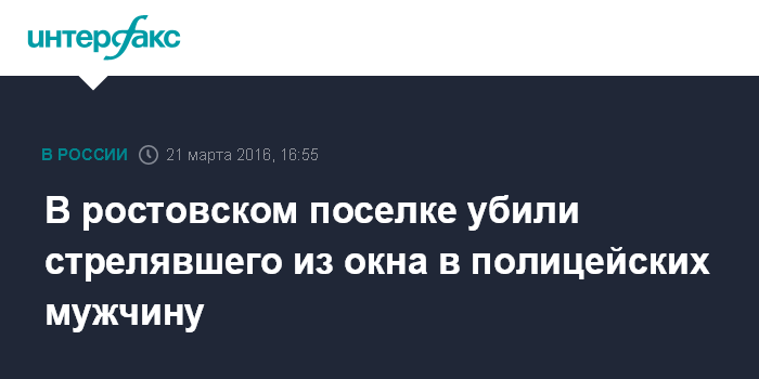 Москва. 21 марта. INTERFAX.RU - Полицейские застрелили мужчину, стрелявшего из окна многоэтажки в Ростовской области, сообщили "Интерфаксу" в пресс-службе ГУ МВД по Ростовской области.