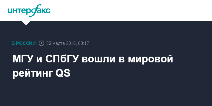 МГУ и СПбГУ вошли в мировой рейтинг QS