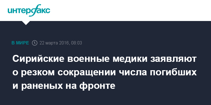 Сирийские военные медики заявляют о резком сокращении числа погибших и раненых на фронте
