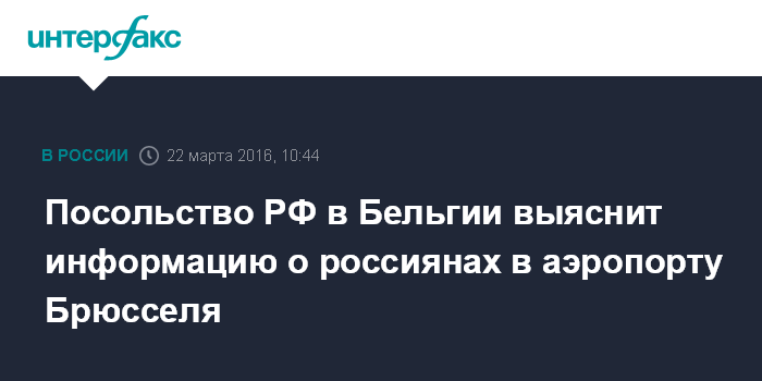 Москва. 22 марта. INTERFAX.RU - В посольстве РФ в Бельгии пока не располагают сведениями о том, пострадали ли граждане РФ в результате двойного взрыва в аэропорту Брюсселя.