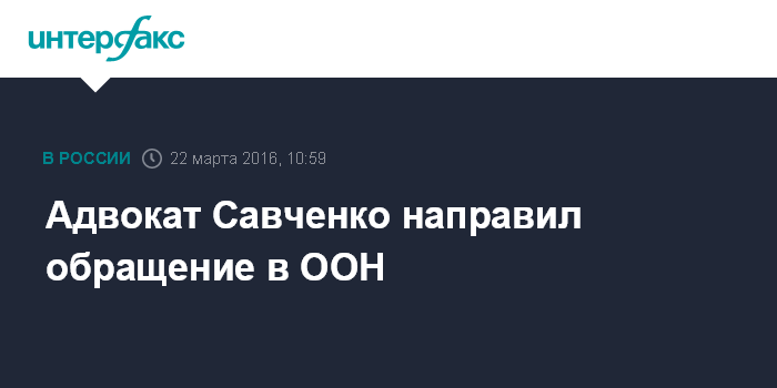 Москва. 22 марта. INTERFAX.RU - Адвокат украинки Надежды Савченко, признанной в РФ виновной в пособничестве убийству российских журналистов, обратился в рабочую группу ООН по произвольным задержаниям, а также к специальному докладчику ООН по правозащитникам.