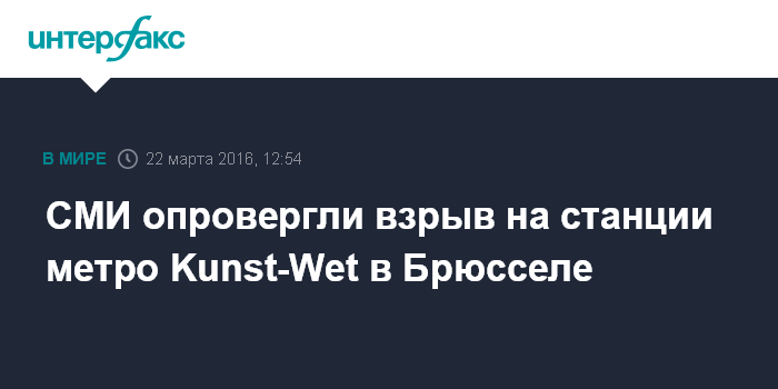 Москва. 22 марта. INTERFAX.RU - Сообщения о взрыве на станции метро Kunst-Wet в Брюсселе не подтвердились, пишет издание HLN.