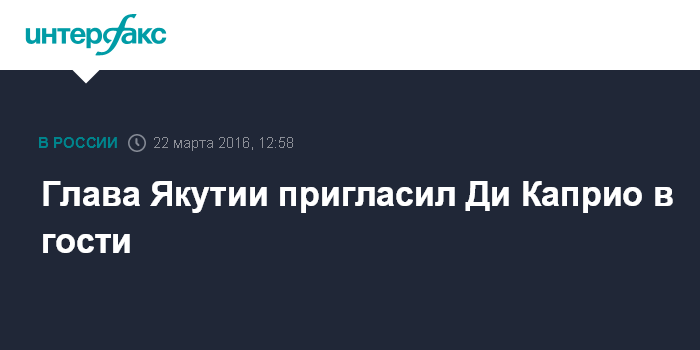 Москва. 22 марта. INTERFAX.RU - Глава Якутии Егор Борисов через соцсеть пригласил голливудского актера Леонардо Ди Каприо побывать в республике.