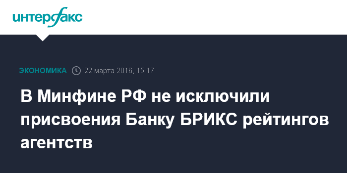 В Минфине РФ не исключили присвоения Банку БРИКС рейтингов агентств