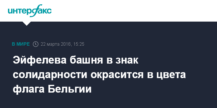 Эйфелева башня в знак солидарности окрасится в цвета флага Бельгии