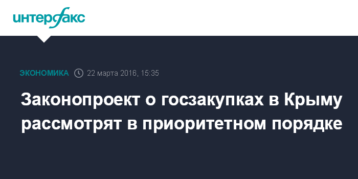 Москва. 22 марта. INTERFAX.RU - Законопроект, откладывающий на год для Крыма вступление в силу закона о контрактной системе в сфере госзакупок, будет рассмотрен в приоритетном порядке, сообщил глава думского комитета по экономической политике, инновационному развитию и предпринимательству Анатолий Аксаков на заседании комитета во вторник.