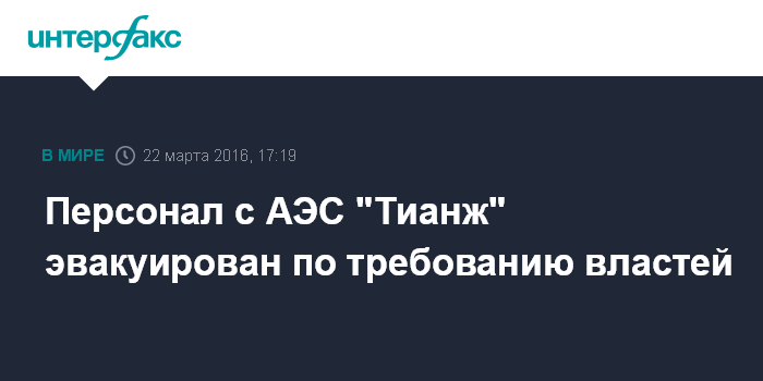 Персонал с АЭС "Тианж" эвакуирован по требованию властей