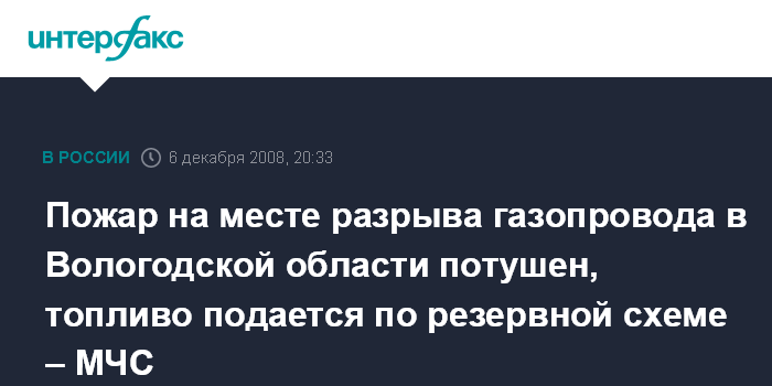 Вологда. 6 декабря. ИНТЕРФАКС СЕВЕРО-ЗАПАД - Пожар на магистральном газопроводе высокого давления "Грязовец - Санкт-Петербург" в Вологодской области, где вечером в субботу произошел разрыв, потушен, сообщили в региональном управлении МЧС.