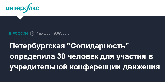 Санкт-Петербург. 6 декабря. ИНТЕРФАКС-СЕВЕРО-ЗАПАД - Петербургское крыло движения "Солидарность" определило участников учредительной конференции новой оппозиционной организации, которая намечена на 13 декабря в Москве.