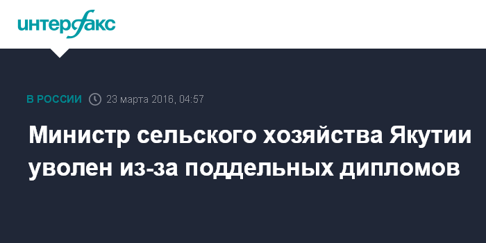 Министр сельского хозяйства Якутии уволен из-за поддельных дипломов