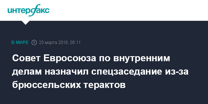 Москва. 23 марта. INTERFAX.RU - На текущей неделе Совет Евросоюза по внутренним делам и вопросам юстиции планирует провести специальное заседание, связанное с серией терактов в бельгийской столице во вторник, сообщил министр безопасности и правосудия Нидерландов Арт ван дер Стер в Twitter.