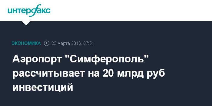 Аэропорт "Симферополь" рассчитывает на 20 млрд руб инвестиций