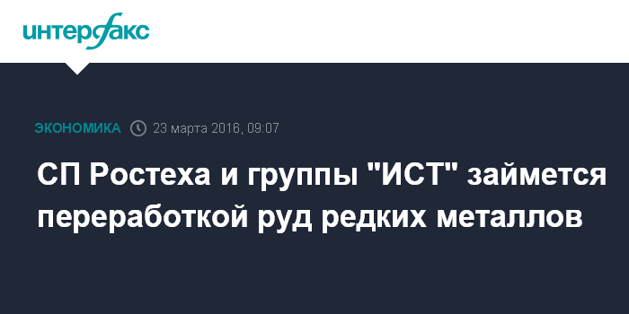 СП Ростеха и группы "ИСТ" займется переработкой руд редких металлов