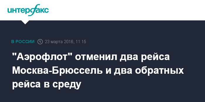 "В связи с закрытием аэропорта Брюсселя Аэрофлот объявляет об изменении в расписании рейсов из/в Брюссель 23 марта 2016 года. Рейсы SU2168 и SU2618 по маршруту Москва-Брюссель, а также рейсы SU2169 и SU2619 по маршруту Брюссель-Москва отменены", - говорится в сообщении.