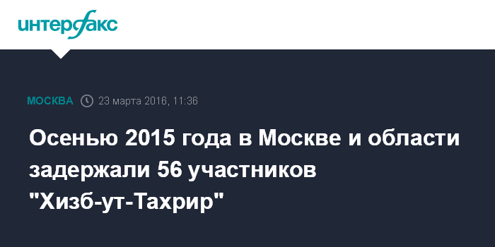 "В октябре 2015 года в ходе проведения совместных оперативно-розыскных мероприятий сотрудниками УФСБ по Москве и Московской области, МВД и ГУ МВД по Московской области в рамках расследования уголовного дела по факту участия в деятельности террористической организации задержаны 56 участников "партии исламского освобождения Хизб-ут-Тахрир аль Ислами", - сказал Якунин в среду на заседании Мосгордумы.